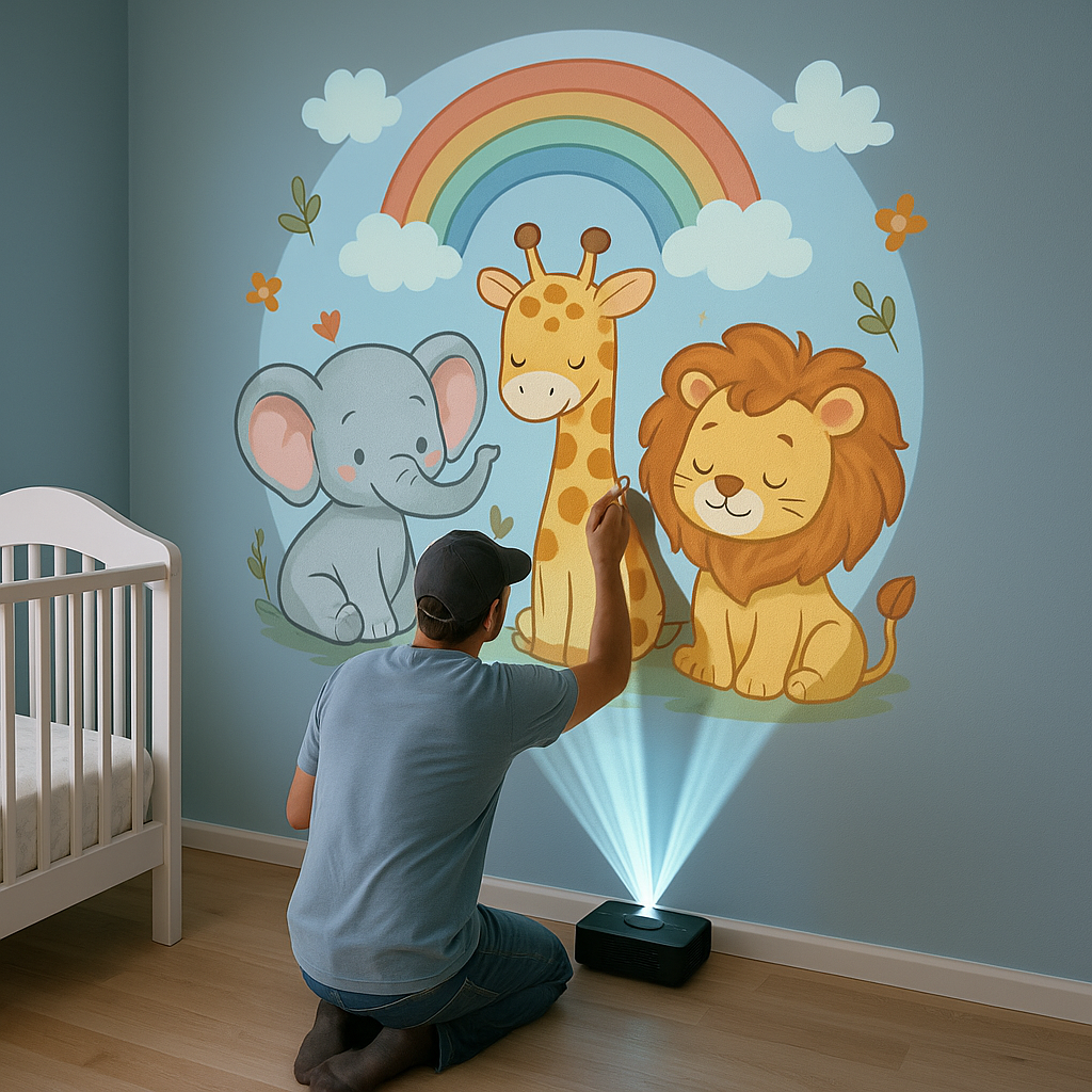 Wir nutzen einen Projektor, um jedes Motiv präzise und detailgenau an die Wand zu übertragen. Die Arbeit erfolgt sauber, schnell und mit professionellem Ergebnis.