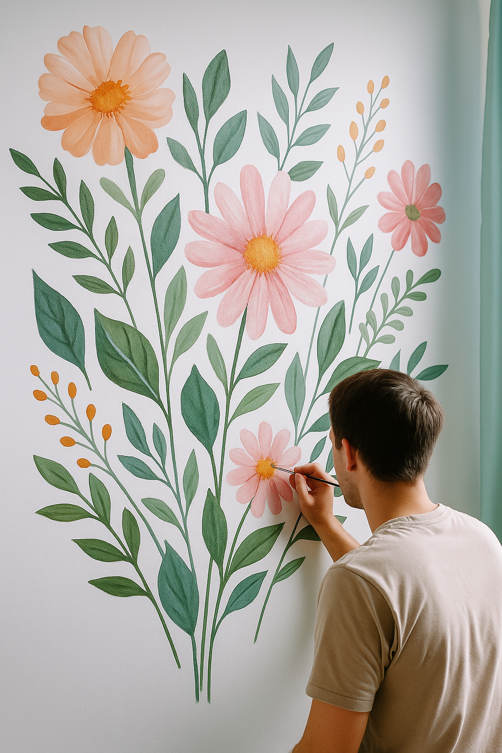 Mit moderner KI-Technologie erstellen wir digitale Motive ganz nach Ihren Vorstellungen. Sie zeigen uns Ihre Ideen – wir verwandeln sie in ein fertiges Motiv, das anschließend präzise an die Wand gemalt wird.